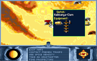 Dune video game is released in 1992 for 16 bit personal computers. It is a role playing game involving adventure with economic and military strategy and loosely following the story of the novel with the same name, written by Frank Herbert. The isometric graphic, excellent for its time, now look like squares, but the interesting story, fast installation and the game play, may quickly override this fact. Now the game is available free everywhere even playing in a browser. There are some dune versions out there, that are bugged, so here is a good one: Download. The download versions can be played directly in Windows, but the old classic way with the DOS Box, give us the control of the screen dimensions. Since 1995(20 years now), I have played this games a couple of times and it never bores me. I'll now write the adventure picture story, escorting Paul Atreides in the desert, search for the fremen and the hidden water, oppose the Harkonnen once more and try to make the planet a paradise. I'll write down all the fremen sitech that I can find, because some of them are well hidden and with no obvious directions how to find them. If you want to see all sietch locations, search this blog by pressing ctrl+f and enter "Sietch:"(with the two points in the small text field - down left in Mozilla - up right in Chrome, then press the small arrows near the text fields to loop all the fremen homes. 2. The Story